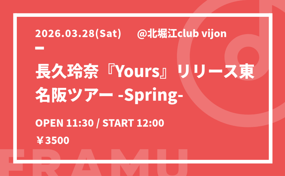 長久玲奈『Yours』リリース東名...